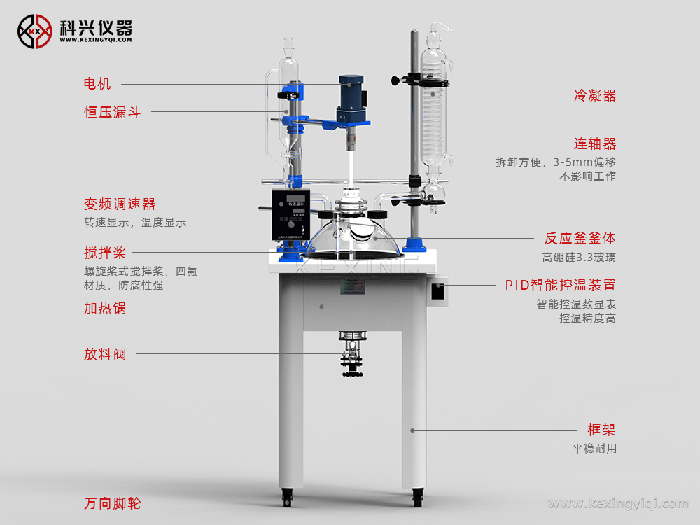 該系列反應(yīng)釜是我公司根據(jù)客戶實際需要及規(guī)定標(biāo)準(zhǔn)的新型單層玻璃反應(yīng)釜,其吸收了國內(nèi)外同類產(chǎn)品的優(yōu)點,同時大膽創(chuàng)新,不僅使用方便(可一人方便移動,操作,清洗,安裝,拆卸),而且結(jié)構(gòu)新穎實用,外形美觀大方;誠為現(xiàn)代化學(xué),精細(xì)化工,生物制藥,新材料合成等試驗及生產(chǎn)的理想設(shè)備。該反應(yīng)釜工作原理:玻璃反應(yīng)釜內(nèi)放反應(yīng)物料,同時可抽真空做攪拌反應(yīng);外部水(油)浴鍋可加水或加熱油進(jìn)行加熱反應(yīng);并能控制反應(yīng)溶液的蒸發(fā)和回流,恒壓加料等功能。(可選配制冷組件,配合制冷源進(jìn)行低溫反應(yīng))