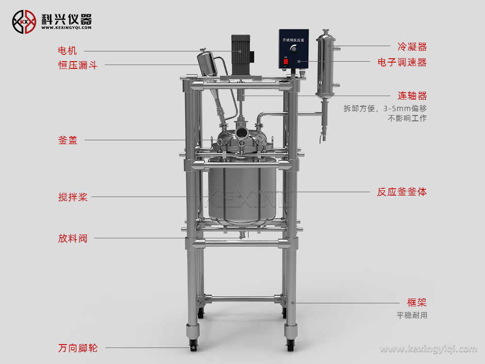 雙層不銹鋼反應(yīng)釜是常用的生化儀器,廣泛地被現(xiàn)代精細化工、生物制藥、科研實驗等行業(yè)所選用,可在恒速、恒力、恒溫的條件下做濃縮、蒸餾、回流、分離、提純反應(yīng),是教學(xué)、實驗、中試、生產(chǎn)的理想儀器設(shè)備。 通過雙層反應(yīng)釜夾層,注入恒溫的(高溫或低溫)熱溶液或冷卻液,對反應(yīng)釜內(nèi)的物料進行恒溫加熱或制冷,并且可以提供攪拌。物料在反應(yīng)釜內(nèi)進行反應(yīng),并能控制反應(yīng)溶液的蒸發(fā)與回流,反應(yīng)完畢,物料可從釜底的出料口放出,操作方便。是現(xiàn)代化學(xué)小樣、石油化工、中樣實驗、生物制藥及新材料合成的理想設(shè)備。