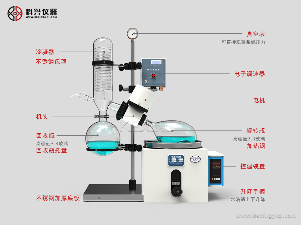 旋轉蒸發(fā)儀主要用于醫(yī)藥、化工和生物制藥等行業(yè)的濃縮、結晶、干燥、分離及溶媒回收。其原理為在真空條件下,恒溫加熱,使旋轉瓶恒速旋轉,物料在瓶壁形成大面積薄膜,高效蒸發(fā)。溶媒蒸氣經(jīng)高效玻璃冷凝器冷卻,回收于收集瓶中,大大提高蒸發(fā)效率。特別適用對高溫容易分解變性的生物制品的濃縮提純。產(chǎn)品可與循環(huán)水式多用真空泵、隔膜真空泵、低溫循環(huán)(真空)泵,循環(huán)冷卻器,恒溫循環(huán)器,低溫冷卻液循環(huán)泵等配套組成系統(tǒng)裝置。